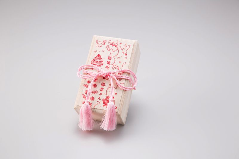 商品名 お祝い印鑑 御結婚祝 カラー牛角(プラム)1本セット 絵柄赤 紐ピンク