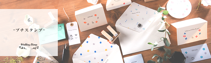 招待状、席札、手作りお菓子など(プチギフト)のアイテムに簡単にスタンプでき、ハンドメイドをより自由自在に楽しんでいただけます。イニシャル、結婚式の日付の入ったイニシャルスタンプをはじめ、6種類147パターンのウェディングスタンプをご用意いたしました。